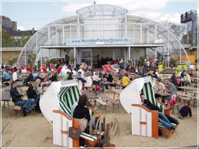 Zurück zu mir und meinem Krüppelarm. Ich konnte den Arzt nun endlich darauf festnageln ( der neue running gag), dass ich morgen früh bis spätestestens um neun das Haus der Gastlichkeit verlassen darf... denn dann wartet auch schon wieder die Arbeit... anbei noch einige Impressionen von Stahlplatten im Arm, der Charité und dem Bundespressestrand, an den mich gestern abend ein lieber Mensch entführt hat....